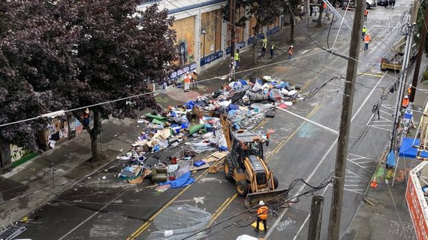 Палаточный лагерь был уничтожен. Имущество жителей свободного Сиэтла погрузили в мусоровозы и вывезли на территорию США.