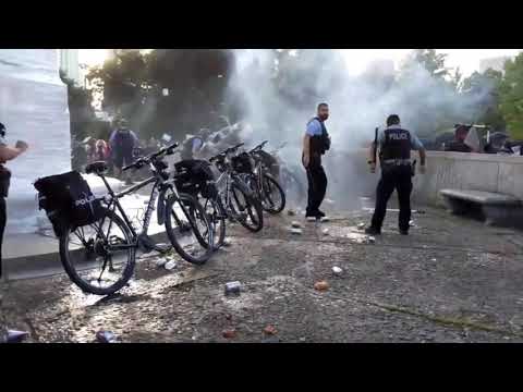 Так, отделение полиции Чикаго сообщает, что как минимум 18 полицейских уже получили ранение во время столкновений, которые продолжаются с 17 июля. По информации местного департамента полиции, толпа протестующих приближалась к памятнику Христофору Колумбу, когда правоохранители попытались преградить им путь.